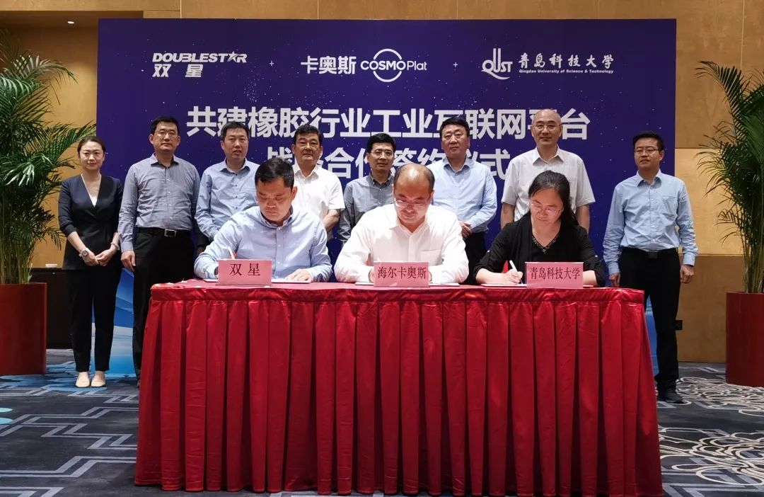 6月8日下午,必赢线路检测3003no1与双星集团、海尔卡奥斯在海尔洲际酒店举行共建橡胶工业互联网平台战略合作签约仪式。校长陈克正、海尔集团总裁周云杰、双星集团董事长柴永森,市国资委主任、党委书…