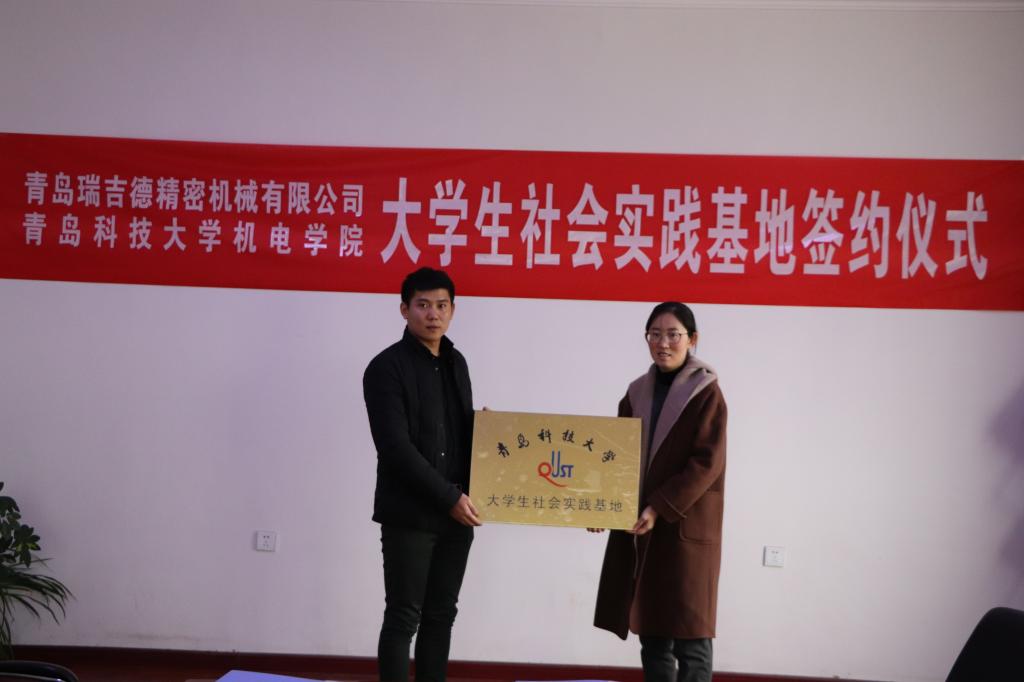 12月15日上午,机电学院、青岛瑞吉德精密机械有限公司共建社会实践基地揭牌仪式在瑞吉德精密机械有限公司举行。机电学院党总支副书记兼副院长王伟,瑞吉德精密机械有限公司总经理段守源及瑞吉…