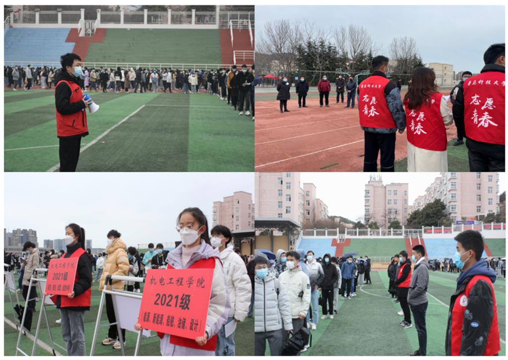 疫情就是命令,防控就是责任。机电学院学生志愿者积极投身疫情防控一线,组织学生开展核酸检测等一系列疫情防控工作。面对一天一轮的核酸检测以及各项防疫工作,机电学院学生志愿者冲锋在前,合理安排核酸检测前的准备工作,设置多层等待区域,多个等待环节,精准落实各项疫情防控措施,保障学生的安全。学院领导对疫情期间学生工作做了明确安排,在保证学生健康安全的前提下,确保网络教学质量,做到停课不停学。