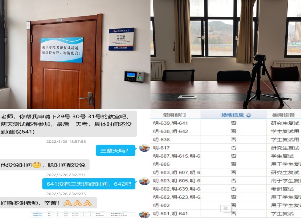 因受疫情影响,全国多所高校已经明确考研复试线上进行。对此,学院领导高度重视,进行需求征集和统筹安排,启用了绘图教室、办公室、会议室等作为考研复试临时场地,复试学生可联系辅导员老师预约使用,全力保障考研学子复试顺利进行。