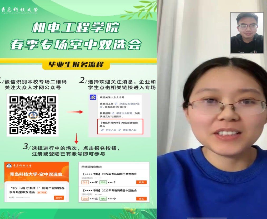 学院举办专场“云端双选会”,为用人单位和毕业生之间搭建“线上桥梁”,全力助推毕业生就业。同时,学院推出“一对一”就业咨询服务,不间断发布招聘信息,积极建立并实时更新学生就业信息台账,区分考研、慢就业、就业困难等不同学生群体需求,长效助力就业工作的开展。
