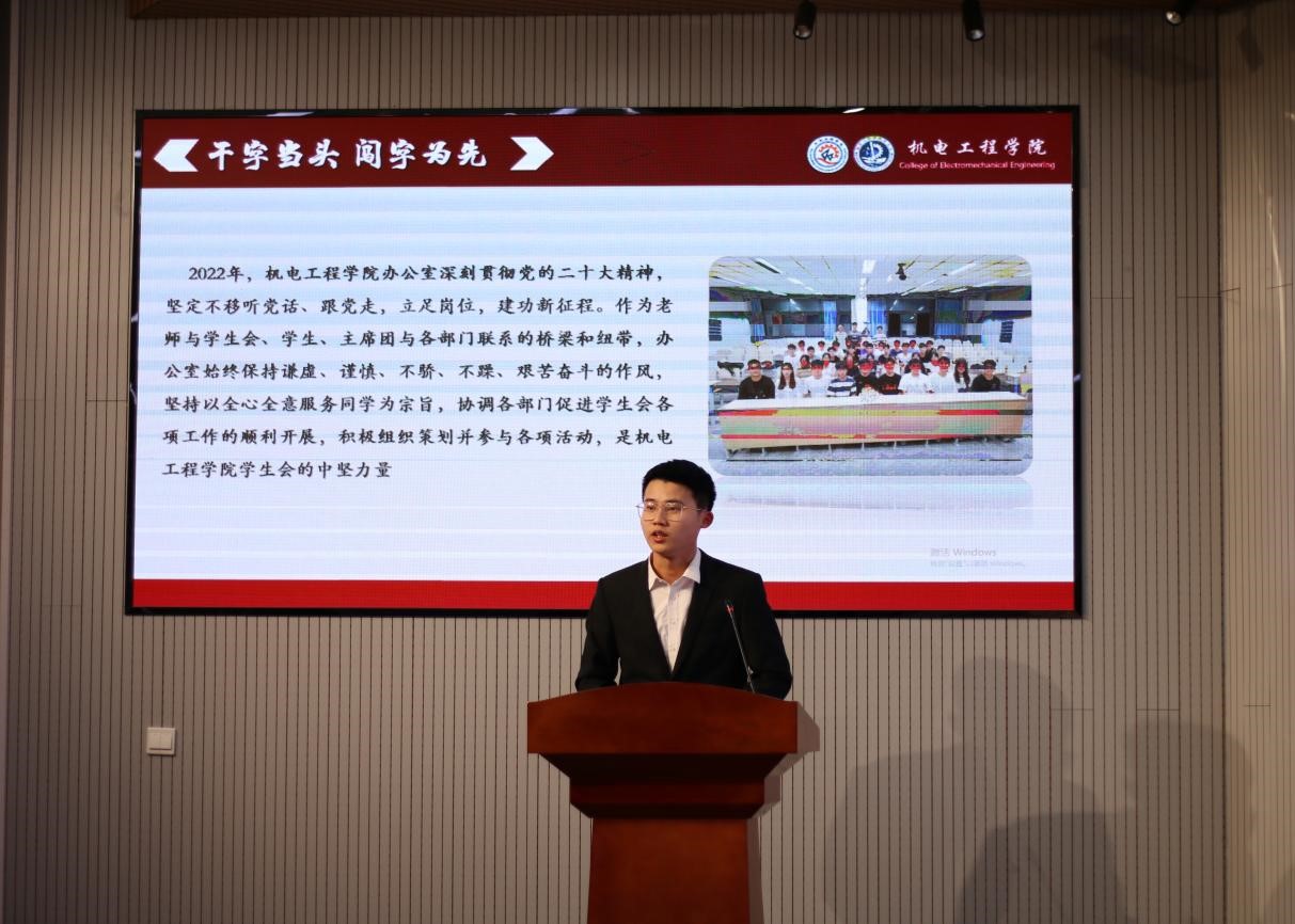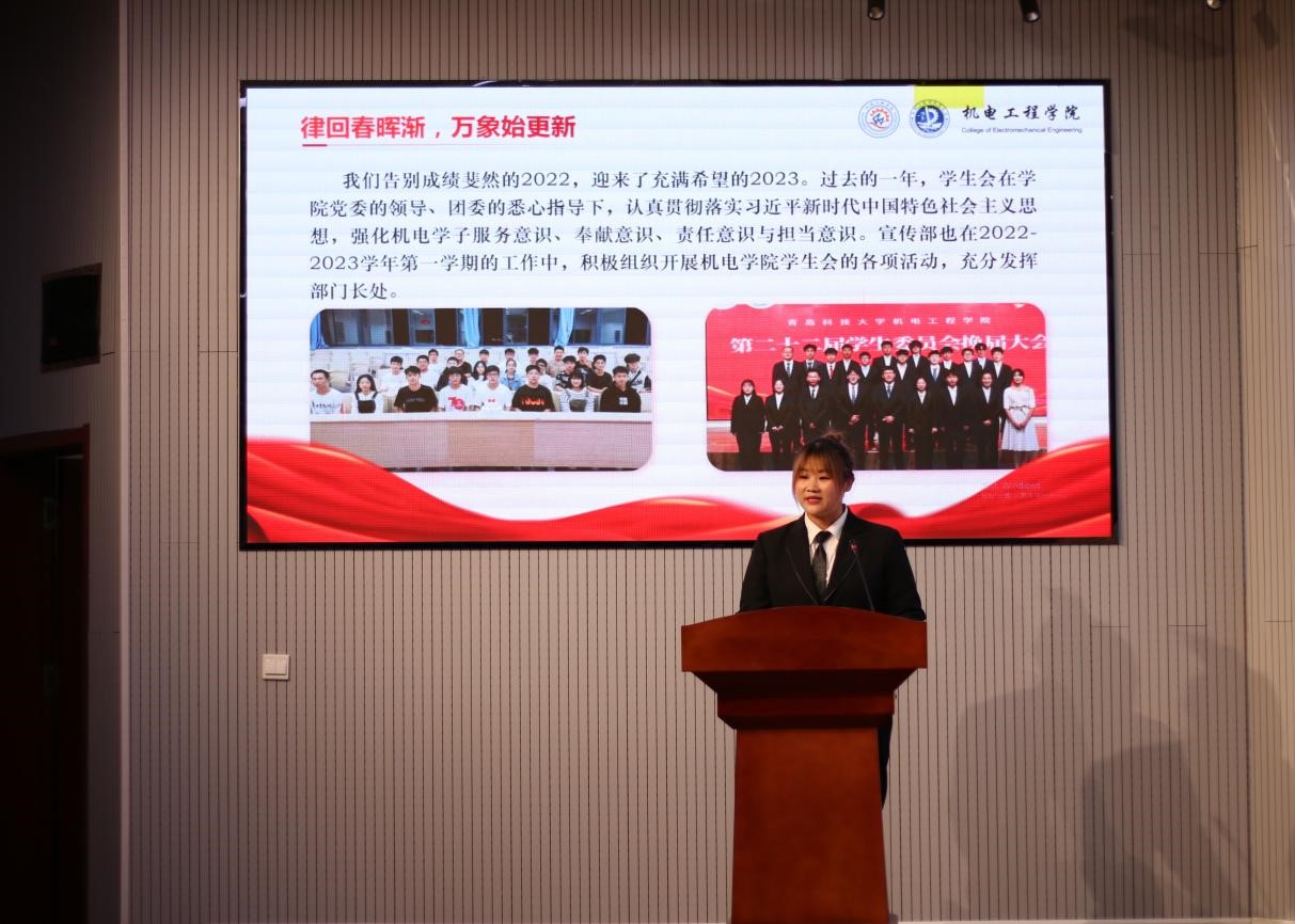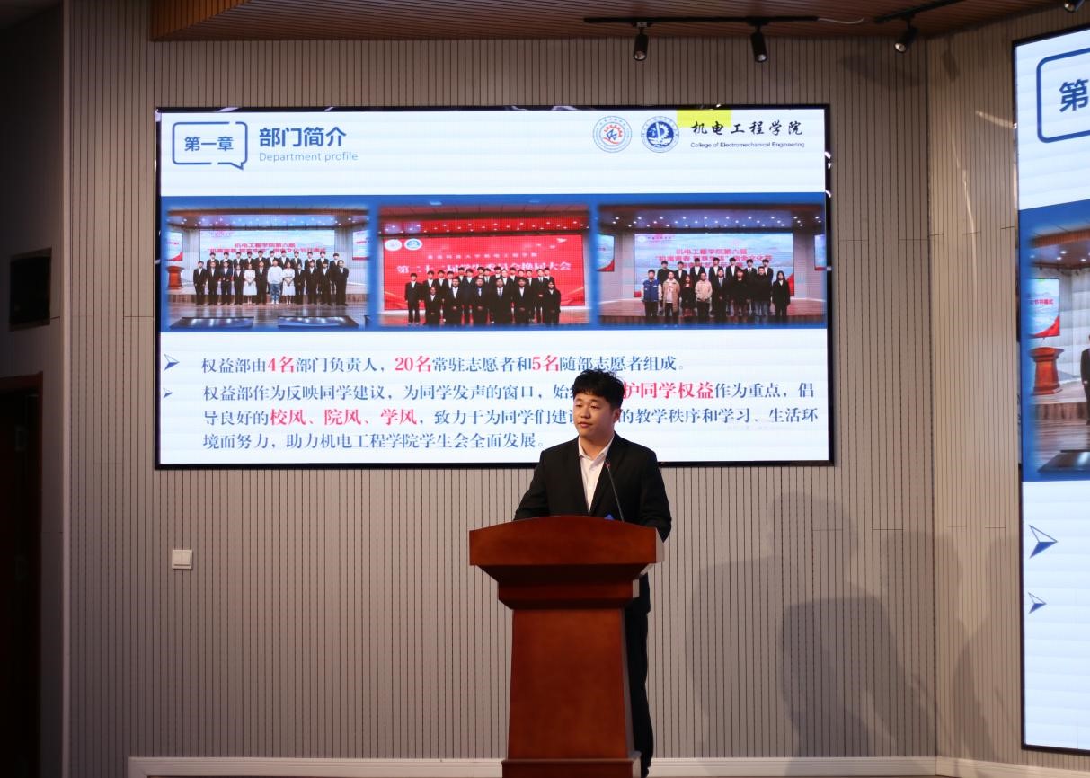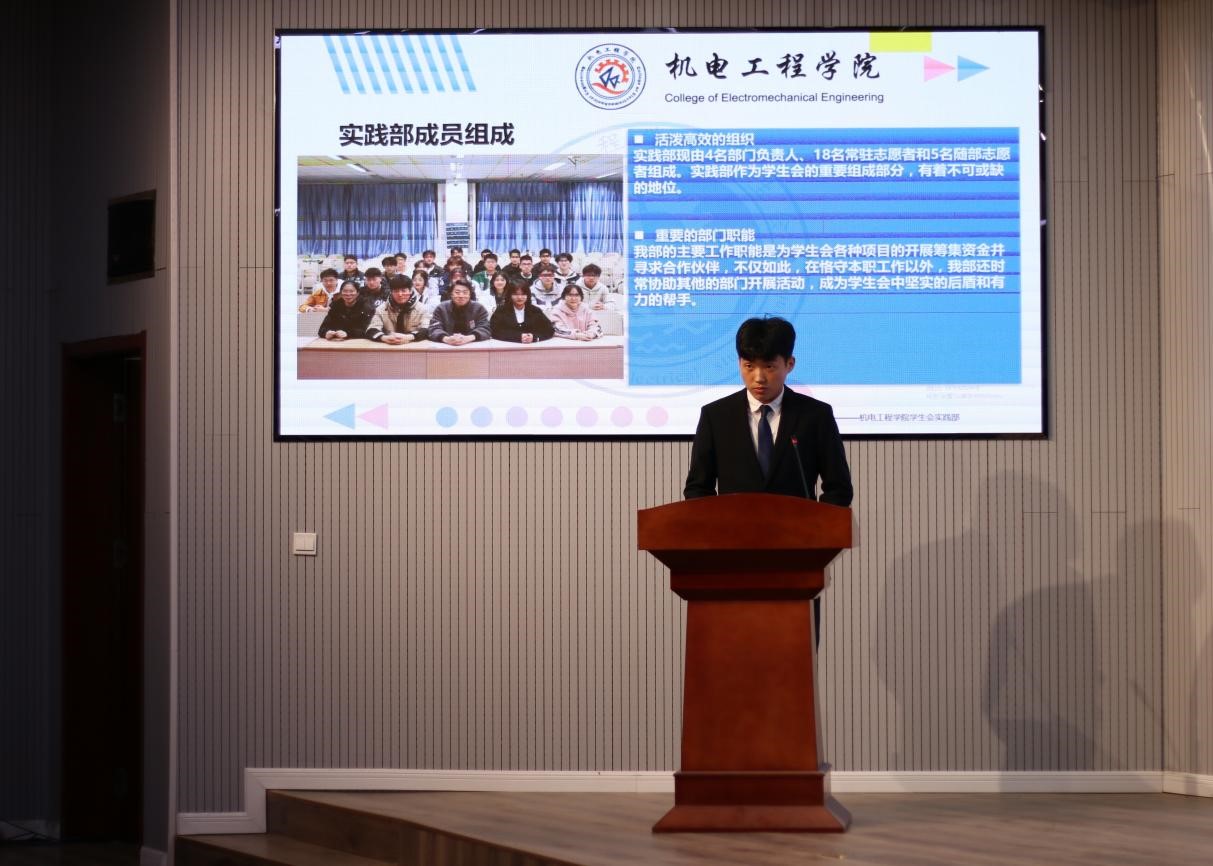 为全面落实2022-2023学年第一学期机电学院学生会的工作开展情况,各部门负责人针对各部的工作情况面向学生会全体成员和老师进行学期工作汇报。