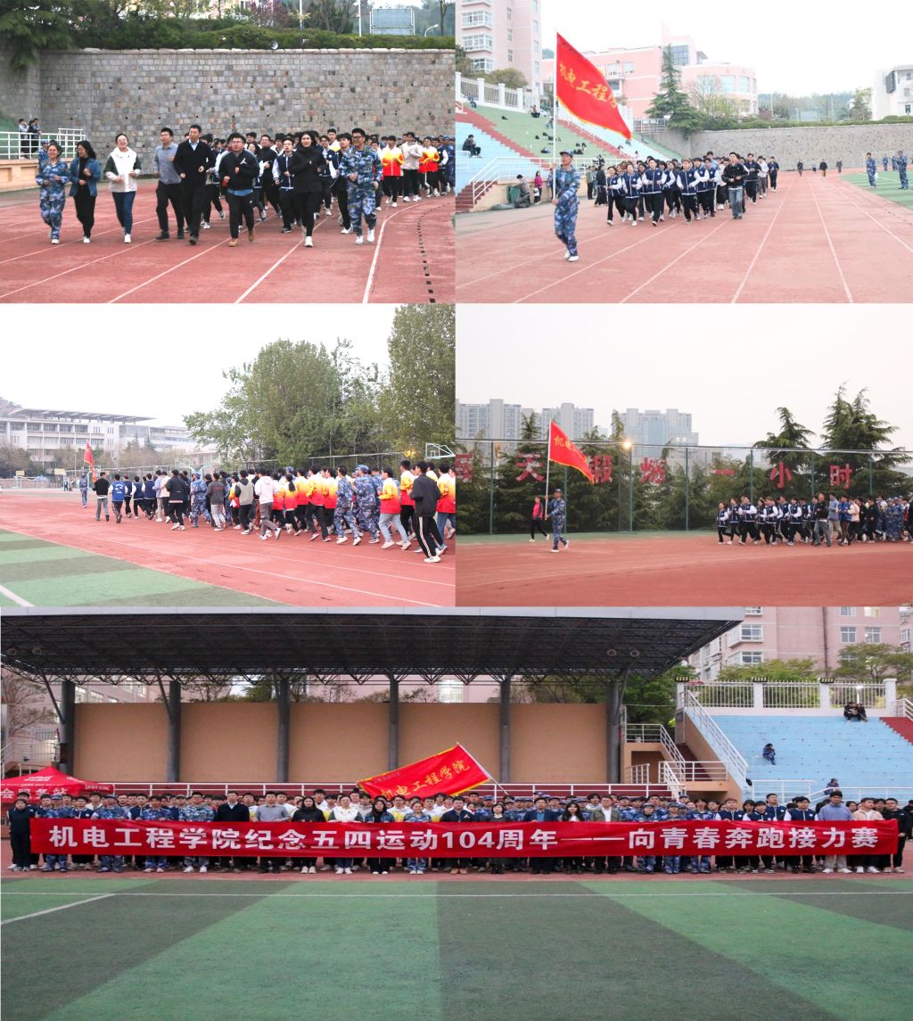 为激励和动员广大青年学生继承和发扬“五四”精神,展示机电学子朝气蓬勃、健康向上的精神风貌,机电学院团委开展纪念五四运动104周年——向青春奔跑接力赛活动。学院104个团支部中的104名青年团员在10.4公里的里程中接力奔跑,以昂扬的斗志和饱满的热情展现机电学子奋发向上的精神风貌和青春活力,真挚表达接力五四薪火、引领时代新风的志气与担当。
