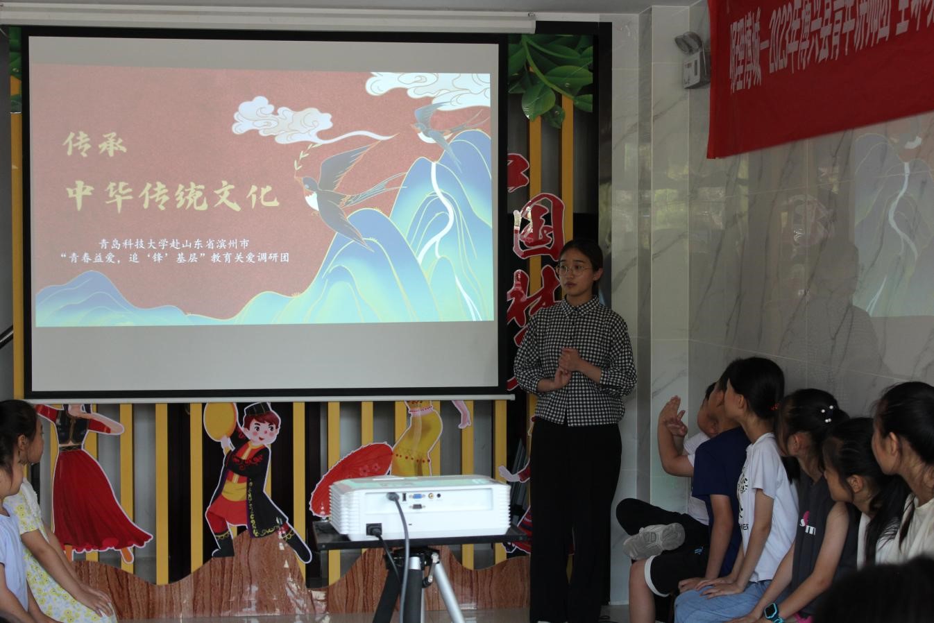 调研团成员胡学煜为孩子们带来“传统文化”专题课堂,致力于传播和弘扬传统文化的重要性和价值,并通过精心准备的讲课向广大学生和社会大众传递这一信息。她以传统文化为主题,通过多媒体展示、案例分析、互动讨论等方式,向学生们阐述了传统文化的内涵和时代价值。她强调了传统文化的丰富性和博大精深的内在意义,以及其对塑造公民道德和社会价值观的重要性。通过这些活动,学生们不仅增加了对传统文化的了解,同时也提高了他们的鉴赏能力和创造力。她鼓励学生们主动参与传统文化的传承和我深刻体会到传统文化的宝贵之处,在讲解过程中,她也不断加深对传统文化的理解和研究。让更多的人了解和传承传统文化,是我们每个人都肩负的责任。