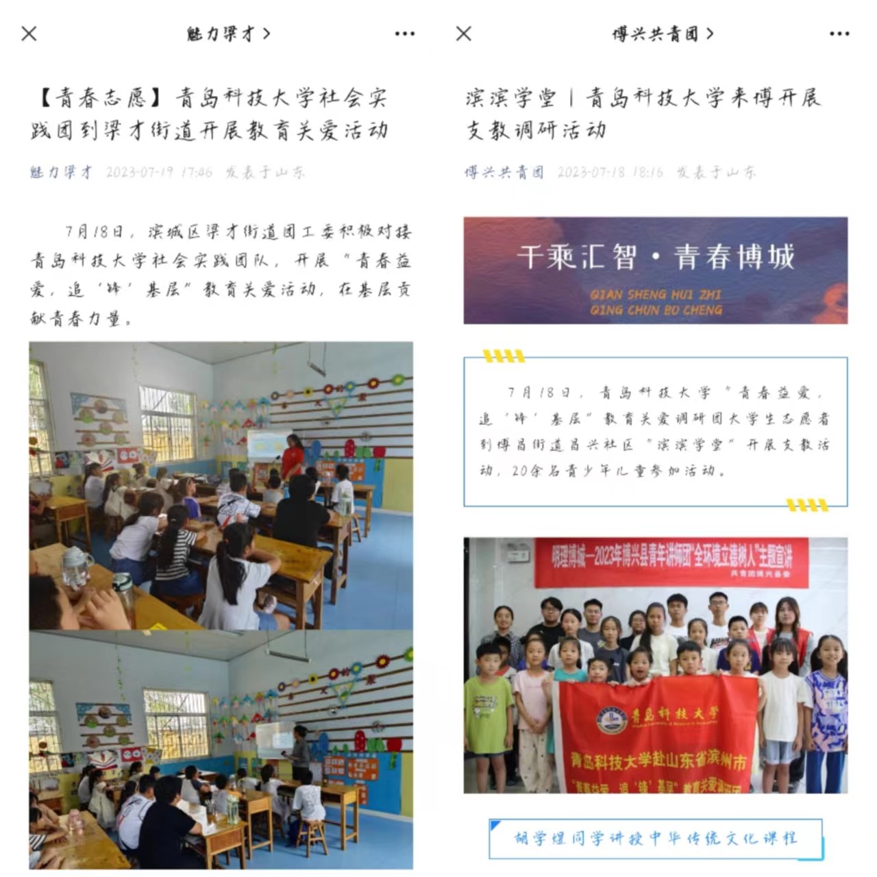 为进一步提高少年儿童的科学文化素养,呵护少年儿童健康成长。7月18日,必赢线路检测3003no1赴滨州市“青春益爱,追‘锋’基层”教育关爱调研团对接滨州市滨城区团区委、博兴县团县委开展大学生乡村教育社会实践,举办了传统文化宣讲,手工制作,智力游戏,科普课堂等特色课程。