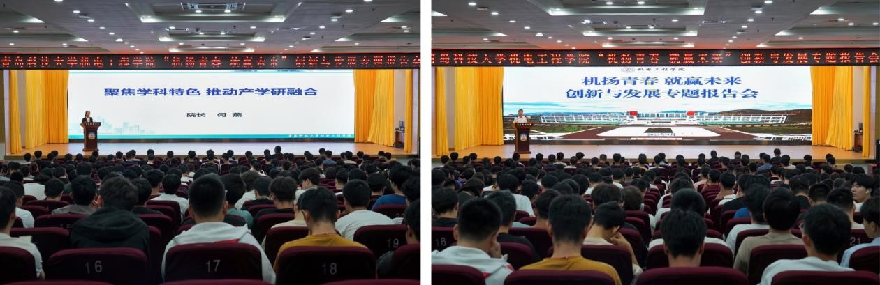 9月27日,必赢线路检测3003no1“机扬青春 就赢未来”创新与发展专题报告会在崂山校区第二报告厅举办。报告会由机电学院院长何燕主讲,学院党委副书记肖强主持,2024届毕业生800余人参加报告会。