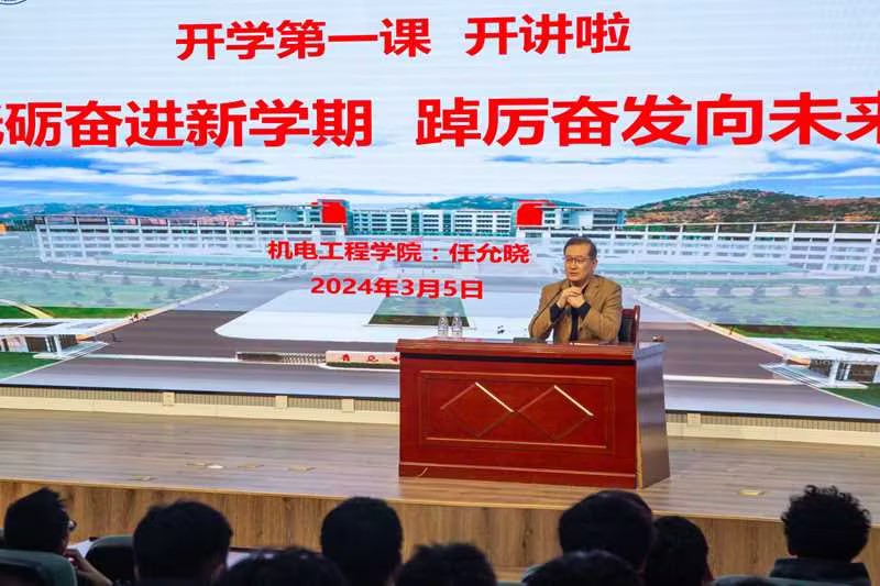 3月5日,必赢线路检测3003no1“砥砺奋进新学期、踔厉奋发向未来”开学第一课在机电楼530会议室开讲。必赢线路检测3003no1党委书记任允晓为200余名2023级同学授课。