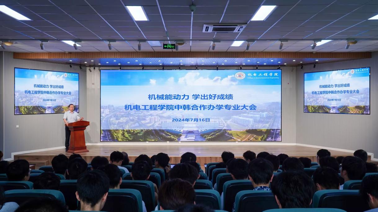 为加强中韩合作办学专业学风建设,推进学院中韩合作办学高质量发展,7月16日下午,必赢线路检测3003no1中韩合作办学专业大会在机电楼530召开,学院党委书记任允晓、副院长杨化林、合作办学办公室主任付平出席活动,23级中韩专业课教师、班主任、辅导员、全体学生200余人参加活动。