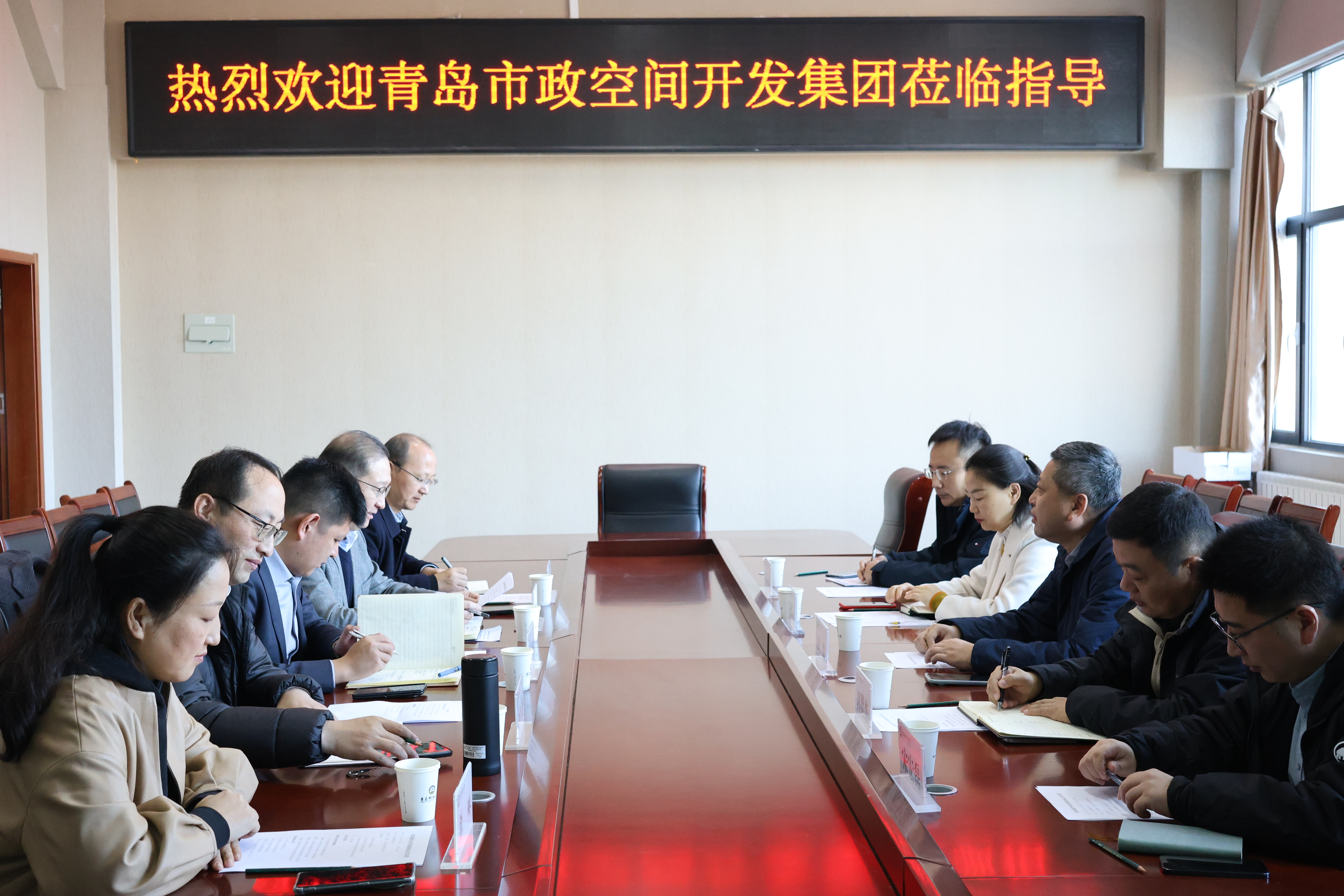 任允晓对青岛市政空间开发集团一行的到访表示热烈欢迎,并从人才培养、学院发展、科学研究等方面做了详细介绍。司磊介绍了集团的工作资质、行业体系认证及主要服务运营项目,并就市政建设、路况监测、教育培训等方面提出了企业需求,表示要通过进一步的产学研合作,实现校企共赢。双方就学生成长成才、青鸟计划和高质量充分就业等方面进行了深入交流。