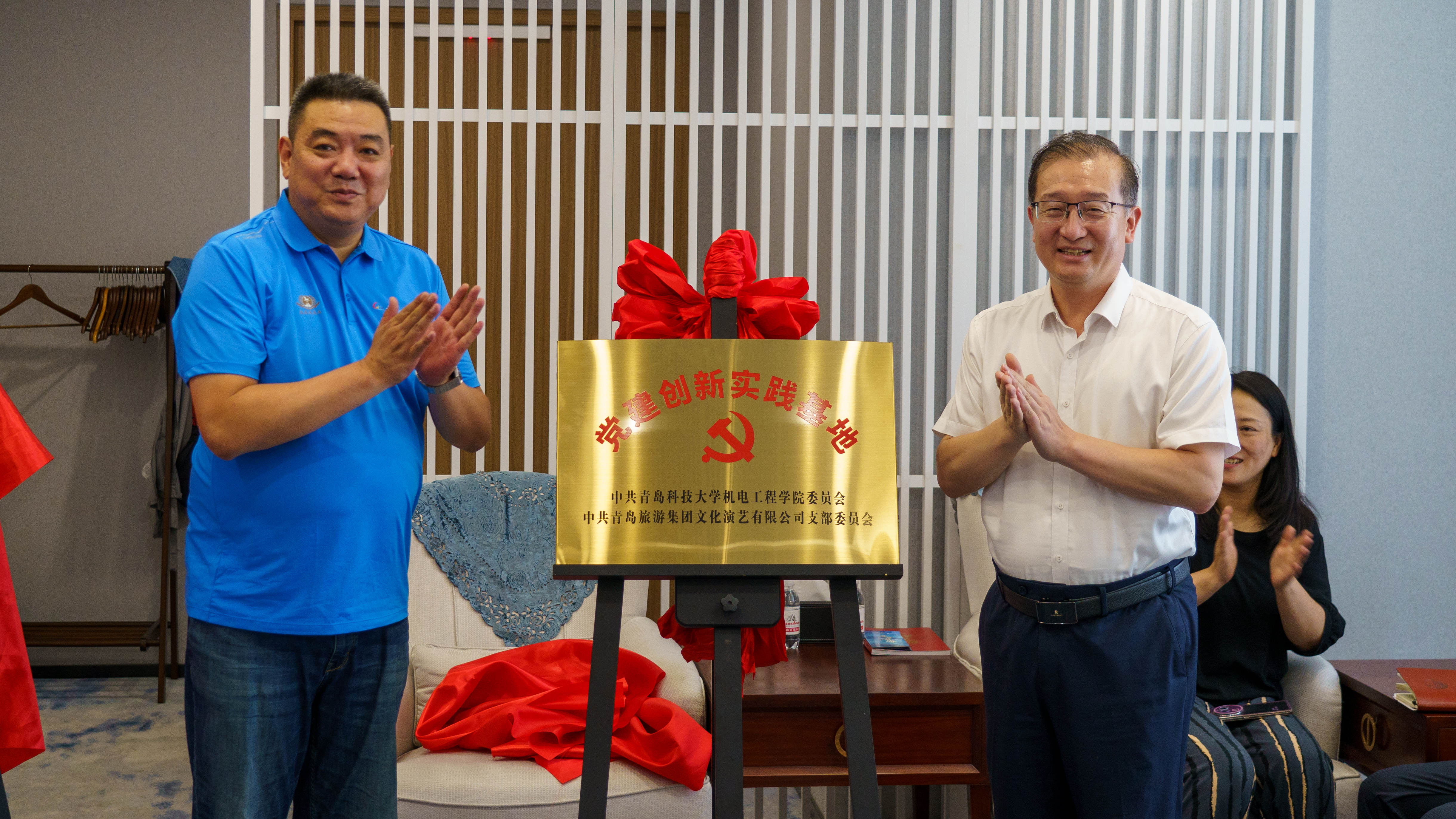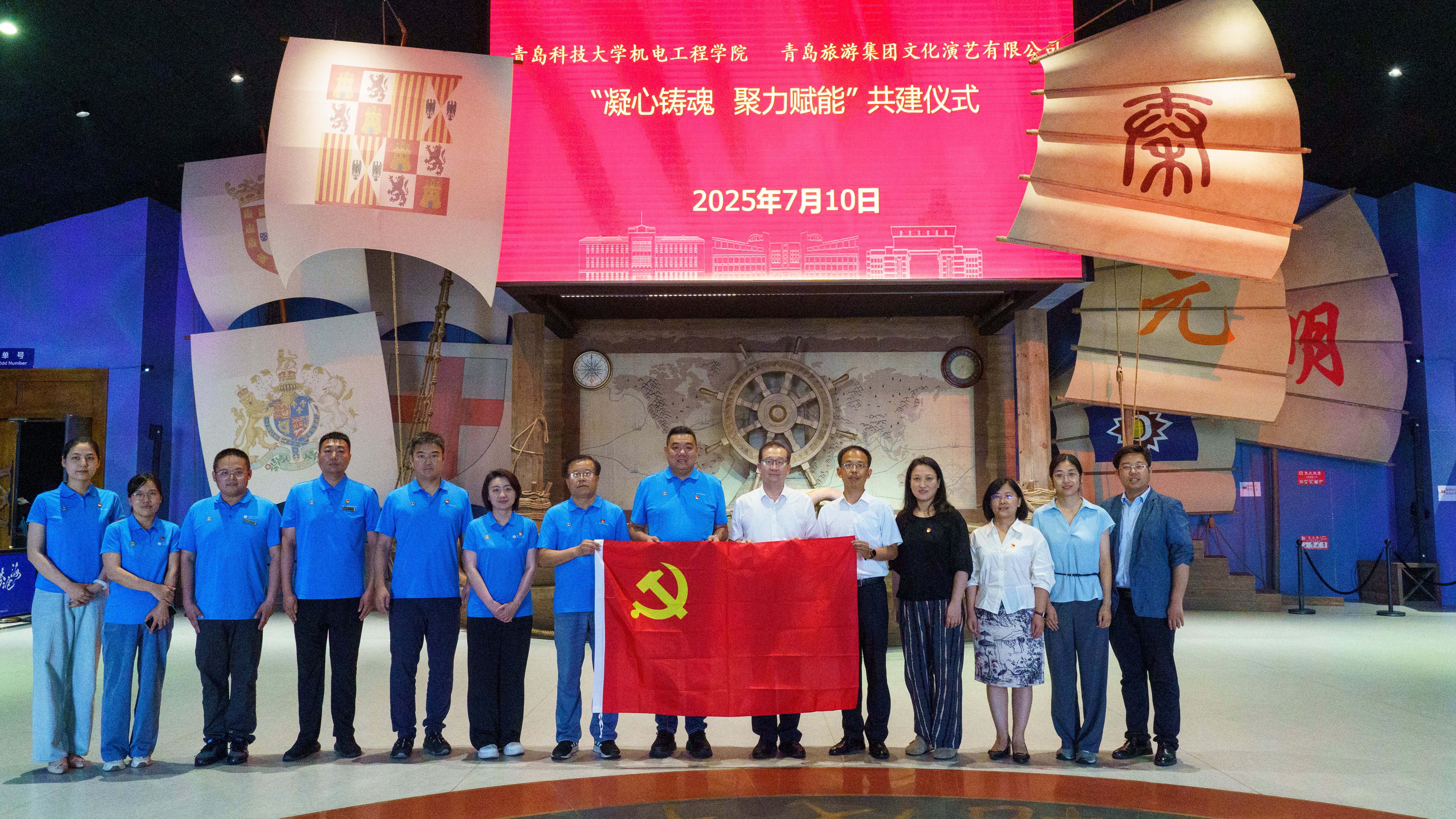 7 月 10 日下午,必赢线路检测3003no1与青岛旅游集团文化演艺有限公司在青岛奥帆中心海上剧场开展共建交流活动。青岛旅游集团文化演艺有限公司总经理韩刚、副总经理孙恬等相关领导,必赢线路检测3003no1党委书记任允晓、团委书记兼学工办主任逄柏鹏、师生党员代表10人参加活动。