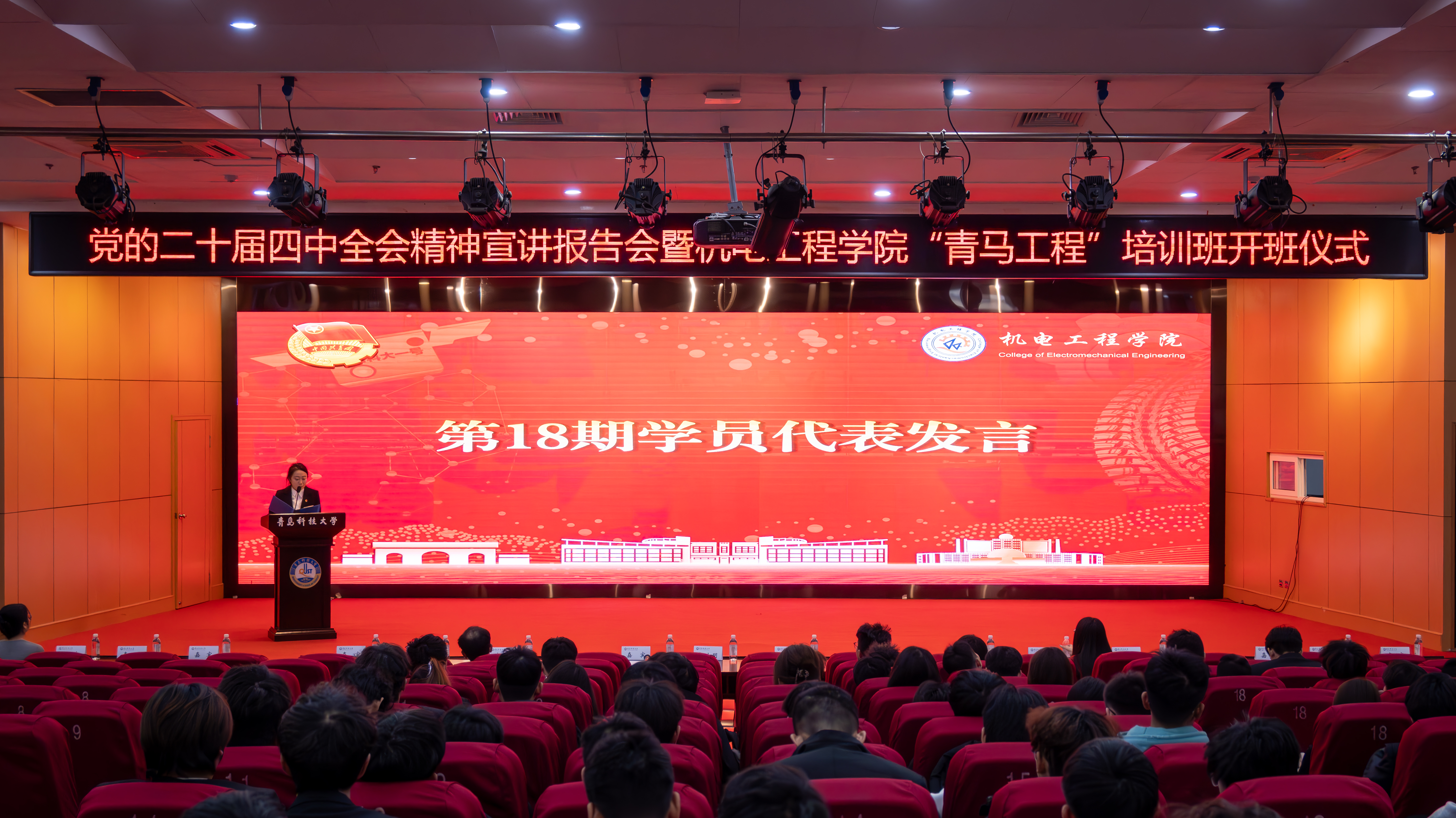 学院团委书记逄柏鹏为青马培训班授旗,本期学员代表李世熜接旗。往期学员代表李其霄分享成长感悟,从理论学习与实践锻炼两方面传递经验;本期学员代表刘姿影作表态发言,承诺将以饱满热情投入培训,努力成长为合格的青年马克思主义者。