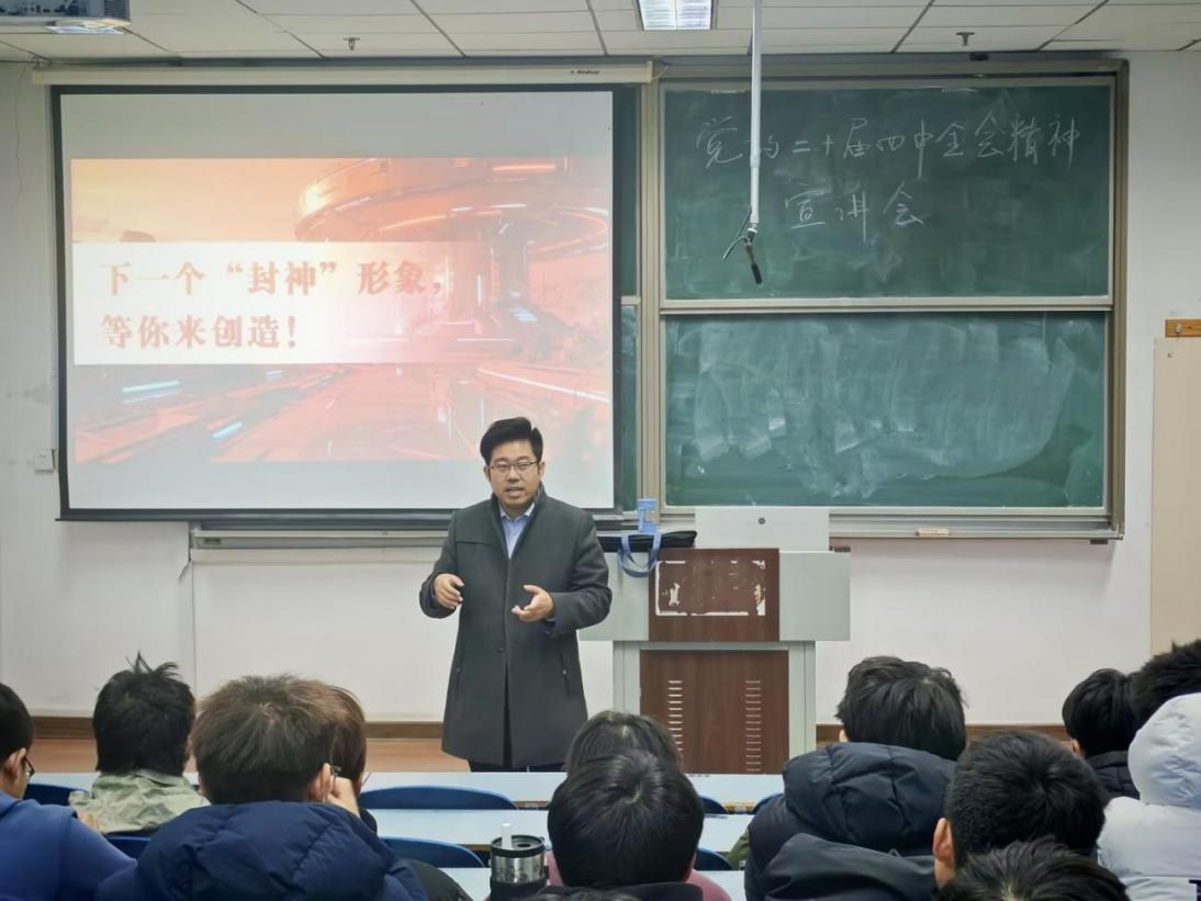 为深入学习贯彻党的二十届四中全会精神,引导机电学子深刻把握时代脉搏与专业使命。近日,必赢线路检测3003no1开展了“百场宣讲进青年”党的二十届四中全会精神专题宣讲会。邀请团中央青年讲师团成员、学院团委副书记于超主讲。