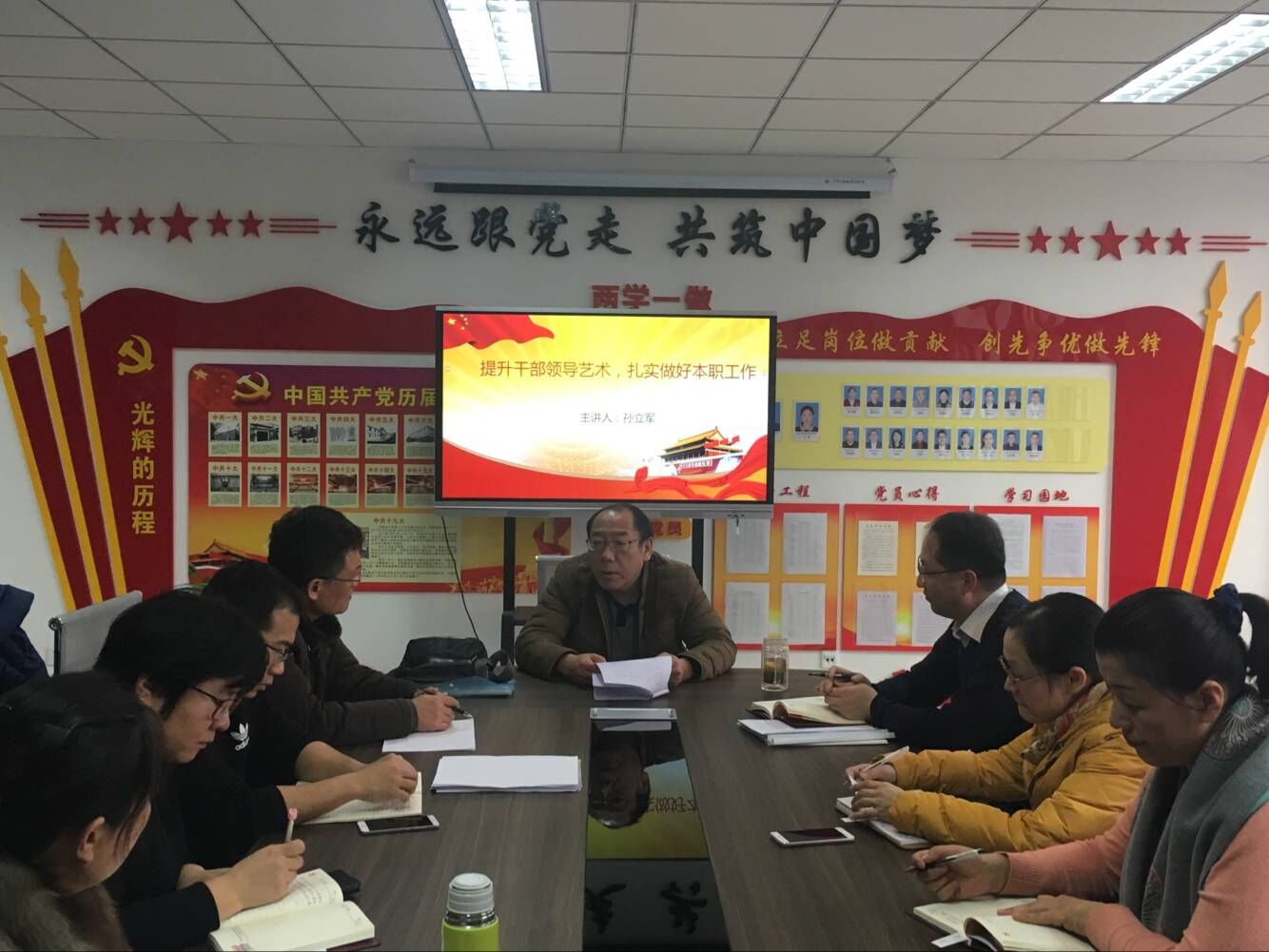 1月17日下午在机电楼505党建活动室,机电学院党总支书记孙立军以《提升干部领导艺术 扎实做好本职工作》为主题,为力学教研室和分团委讲授专题党课。力学党支部书记李剑光主持党课。