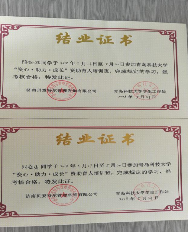 5月19日-20日,必赢线路检测3003no1在明德楼学生发展指导中心会议室举行第三期“资心•助力•成长”资助育人培训班。四方、崂山校区各学院2015-2017级家庭经济困难学生近八十人参加培训,机电学院高机171班的陈凯铭和油储171班的刘盛涛作为代表参加。培训由济南贝爱特尔管理咨询有限公司讲师团主讲。