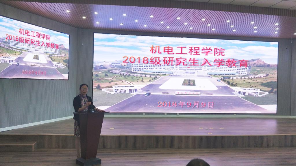 会上,院长何燕代表全院师生致欢迎辞,对2018级研究生新生的到来表示热烈的欢迎和祝贺,并向全体新同学介绍了学院的定位、学院的重点学科与省重点产业的结合情况等,对研究生们今后的学习和生活提出要求和期望,不忘初心,砥砺前行。并提出研究生们一定要有创造性、主动性和能动性,最后祝福同学们能够有个伟大的前程。张斌副院长介绍了学院的整体概况。目前机电学院形成了以机械学科为主,能源与动力、船舶与海洋、力学、材料科学等多学科协调发展的大机械学科。党总支书记孙立军在讲话中对新生们提出了三点要求:认清形势、感悟未来、把握现在。认为研究生要讲政治守规矩,在研究生期间要有自己的目标规划并做出相应的准备。