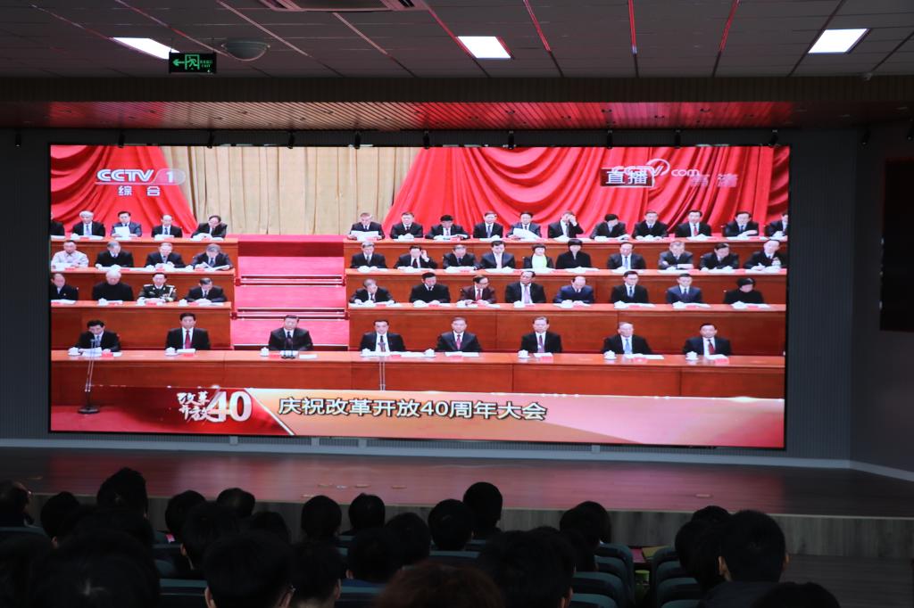 庆祝改革开放四十周年大会于12月18日上午在北京人民大会堂隆重召开,习近平总书记发表了重要讲话。学院采取集中学习和各自学习的方式结合。学院党总支在机电学院楼530会议室集中收看庆祝改革开放40周年大会,机电学院领导班子参加了活动,学院教师代表、党员代表、团、学代表、入党积极分子代表、研究生代表、班级代表共190余人参与了观看学习。各党支部、教研室、班团也在办公室、教室、宿舍分别组织了观看。