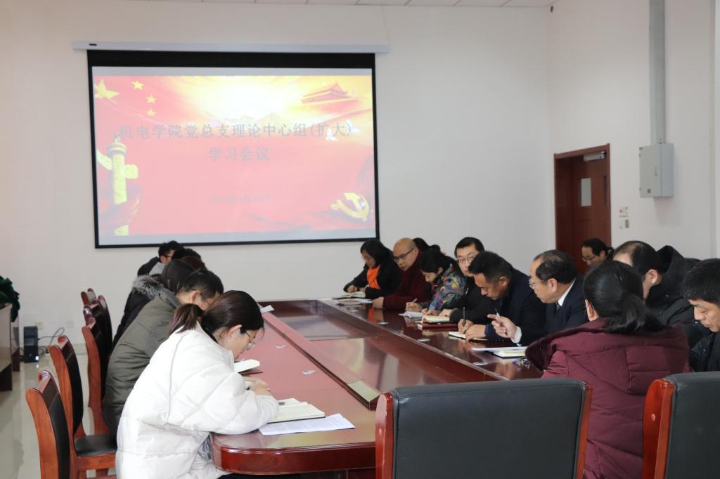 1月15日下午,机电学院党总支理论学习中心组学习会议召开。会议传达学习了习近平总书记在庆祝改革开放40周年大会、《告台湾同胞书》发表40周年纪念会、十九届中央纪委三次全会上的重要讲话精神。围绕民主生活会要求,在前期集中学习和个人自学的基础上,进一步学习了《习近平谈治国理政》《习近平新时代中国特色社会主义思想三十讲》,习近平总书记视察山东、广东、上海时的重要讲话精神,在中央全面深化改革委员会第五次会议上和在纪念刘少奇同志诞辰120周年座谈会上的重要讲话精神,以及《中国共产党章程》《中国共产党纪律处分条例》部分章节内容,并进行了讨论交流。学院党总支理论学习中心组成员、各党支部书记参加了会议。机电学院党总支书记孙立军主持会议并讲话。