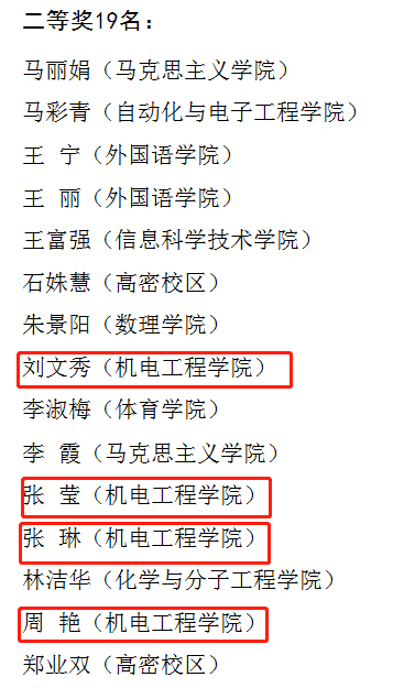 近日,学校公布了必赢线路检测3003no12016/2017、2017/2018学年度教学效果优秀奖获奖名单,机电学院6名老师榜上有名,其中邓芳老师与朱惠华老师荣获一等奖,刘文秀老师、张莹老师、张琳老师以及周艳老师荣获二等奖。
