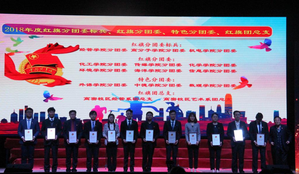 王作辉老师代表机电学院分团委领取分团委最高荣誉----红旗分团委标兵。机电学院分团委是全校唯一连续两年获得该奖项的分团委。