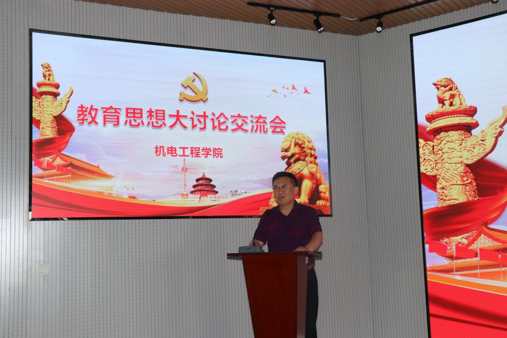为深入学习贯彻习近平新时代中国特色社会主义思想和党的十九大精神,认真学习领会全国全省教育大会精神,主动适应高等教育新形势新要求,紧紧围绕立德树人根本任务和学校奋斗目标,7月9日下午,机电学院在学院530会议室开展了教育思想大讨论交流会。机电学院党总支书记孙立军、副院长郭建章、副院长张卫锋参加了会议,交流会由党总支副书记兼副院长王伟主持。