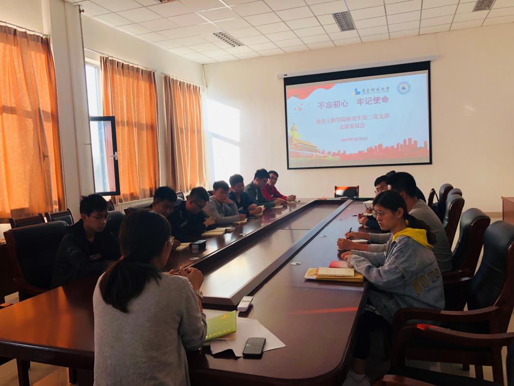 为认真贯彻落实学校“不忘初心、牢记使命”主题教育工作安排,激发研究生新生党员树立正确的人生观、价值观,强化自身的责任意识和使命担当精神,营造爱国爱校氛围、凝聚奋进力量,10月8日下午,必赢线路检测3003no1研究生第三党支部在机电楼518会议室召开 “不忘初心再出发,牢记使命勇担当”主题教育会议,机电学院党总支副书记兼副院长王伟参加并主持了会议。