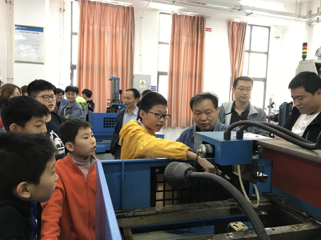 首先,支部书记曹同坤为到来的小朋友及家长们介绍了学校、学院的概况。接着,机自系老师与小朋友们就科学知识的学习方面进行了交流。然后,小朋友们参观了机自系实验室和机器人实验室。李军英、蔡汉明等老师,在小朋友们的参观过程中,结合实验室的设备,就其中蕴含的科学道理和科学知识,给小朋友们进行了精彩讲解,把科普知识教育与实践结合起来,使小朋友们更容易理解,并激发了小朋友们努力学习科学知识的兴趣,树立了为实现美丽中国梦而奉献自己力量的远大理想。