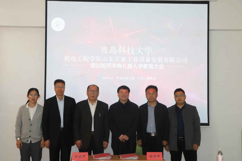 金风送爽,天朗气清,机电学院在这收获的季节迎来了青科大机电学院----山东正泰工业设备安装有限公司培训班新同学。10月31日,培训班开学典礼暨入学教育大会在机电学院529会议室隆重举行。党总支书记孙立军、山东正泰工业设备安装有限公司董事长张茂顶先生、校统战部部长陈洪宗、党总支副书记兼副院长王伟、副院长郭建章、过控系主任段振亚教授、分团委书记王作辉、山东正泰工业设备安装有限公司企管办主任朱淑田女士、班主任白杨等参加了活动。