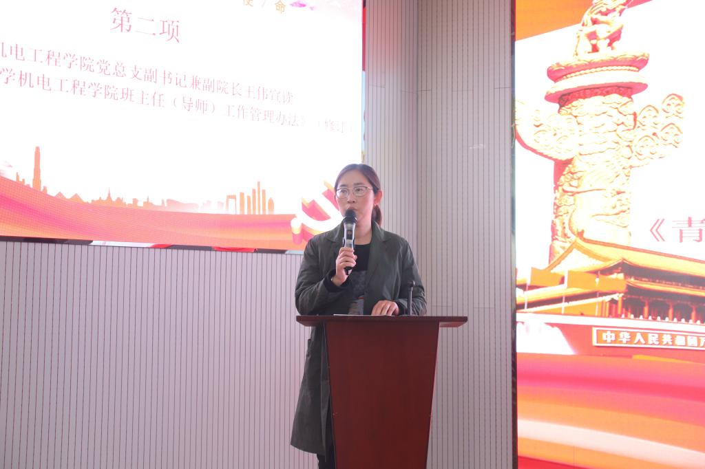 活动中,王伟宣读了《必赢线路检测3003no1班主任(导师)工作管理办法》并做了解读。
