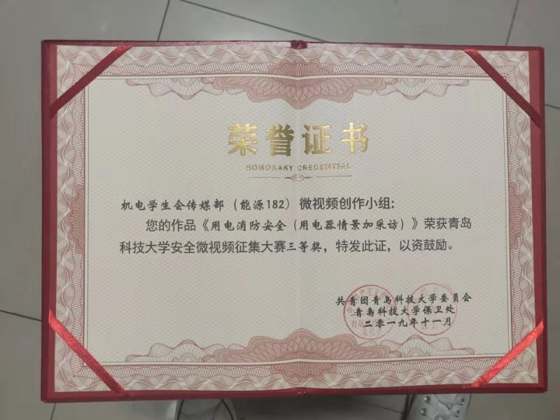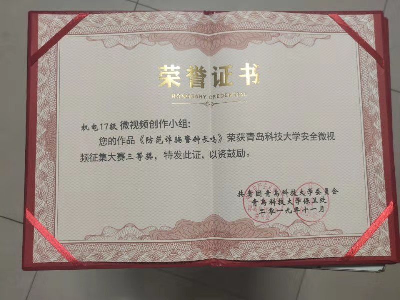 11月19日,必赢线路检测3003no1安全主题微视频征集活动颁奖仪式在尚舜报告厅举行,机电学院在此次征集活动中获得佳绩。其中,17级学生制作的《防范诈骗警钟长鸣》、机电学生会传媒部(能源182)制作的《用电消防安全(用电器情景加采访)》荣获三等奖,机电学院荣获优秀组织单位荣誉称号。