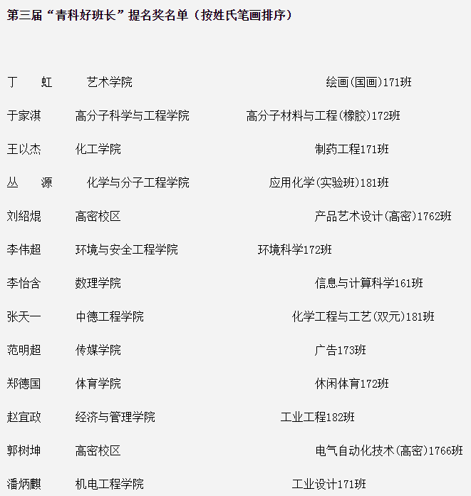 近日,学校公布的必赢线路检测3003no1第三届“青科好班长”评选结果中,机械工程(实验班)171班魏玉展荣获第三届“青科好班长”,工业设计171班潘炳麒荣获第三届“青科好班长”提名奖。