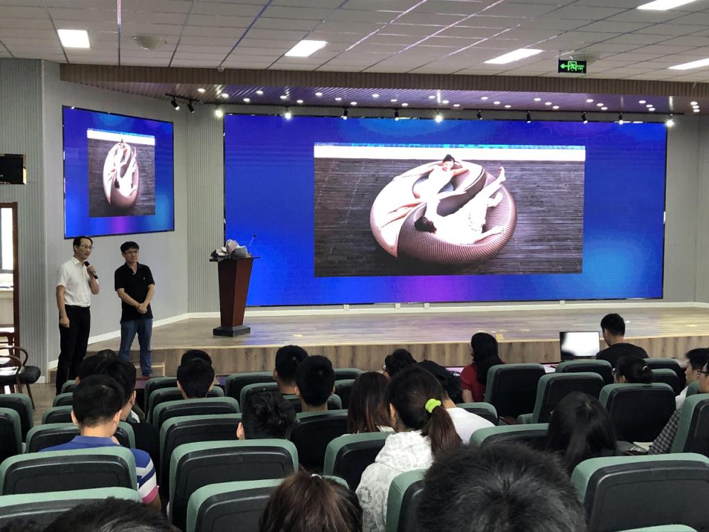 王震亚教授主讲4门慕课课程,期中«人人爱设计»、«设计创意生活»被评为国家在线精品开放课程,获得国家教学成果奖1项,省级教学成果奖3项,在线学生人数超过50万人。王教授在讲座中深入浅出地介绍了设计、工业设计的概念,设计与技术的关系;旁征博引地介绍了从古代到现代设计的表现形式,以及设计对人类社会的推动作用和对人类生活的创新引领作用。并提出现代设计的三个发展方向即智慧化、人性化和情感化。王教授在现场回答了学生提出的问题,与学生们进行了亲切互动。