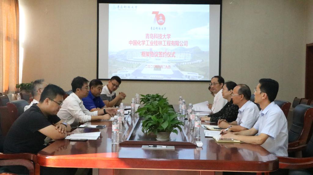 张磊代表中国化学工业桂林工程有限公司感谢学校对公司的大力支持,并介绍了中国化学工业桂林工程有限公司发展规划和目标,公司将与青科大开展全面的合作,全方位提升产品竞争力和服务竞争力。