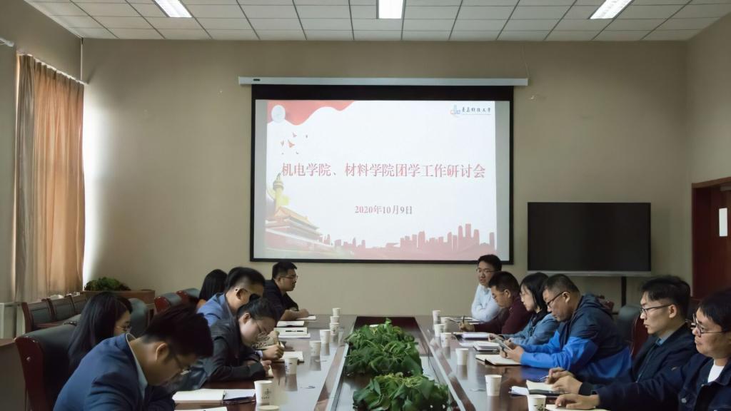 首先,机电学院团委书记、学工办主任王作辉对我院学生和专业设置情况、团学队伍及团学工作概况进行简明扼要的介绍。材料学院团委书记、学工办主任逄柏鹏介绍了材料学院在学风建设、考研先进等方面的情况。双方在学生教育管理、创新创业、学风建设、如何加强团学队伍、个人科研能力等方面进行深入交流。