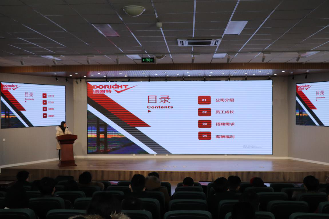 1月11日上午10点,德固特校园专场招聘会在机电楼530举行,机电学院毕业生积极踊跃参加。