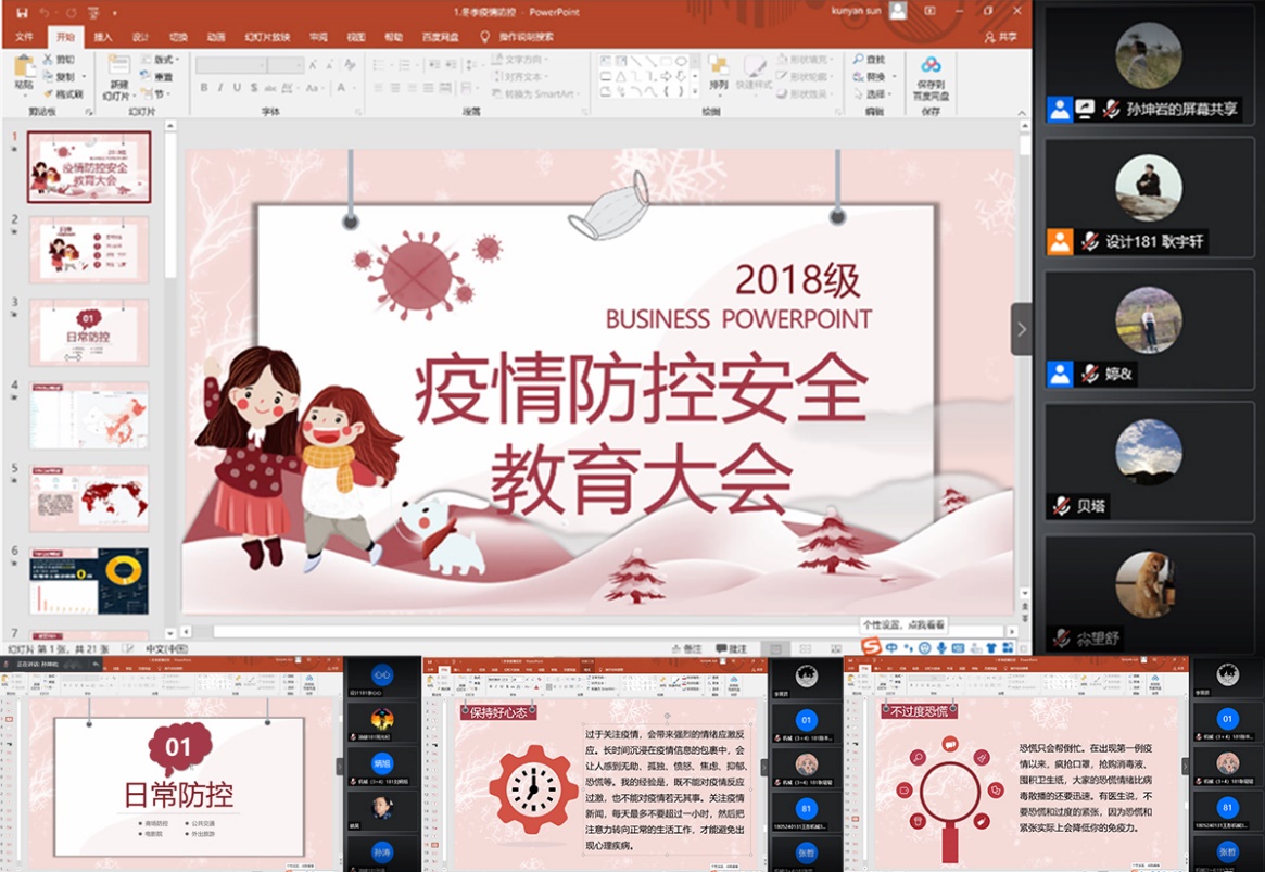 孙坤岩就疫情防控开展安全教育,并积极号召广大同学高效利用假期时间,全面提升个人素质。安全教育主要从“疫情环境”“预防办法”两方面展开,并结合大学生特点着重强调了出行、饮食等方面。同时,孙坤岩强调18级同学应认真把握大三寒假这一重要转折阶段,抓住时代机遇,作好发展规划,积极参与活动,让假期生活成为完善自我,不断攀登的阶梯。许婷婷为同学们讲述了“挑战杯”“机电产品创新大赛”等赛事的事项。