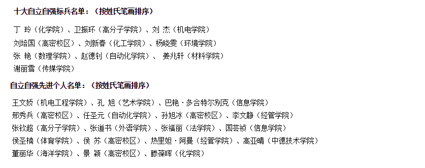 近日,在必赢线路检测3003no1第十七届“十大自立自强标兵”评选结果公示中,机电学院机械181班刘杰同学荣获“十大自立自强标兵”,新能源182班王文娇同学获得“自立自强先进个人”。