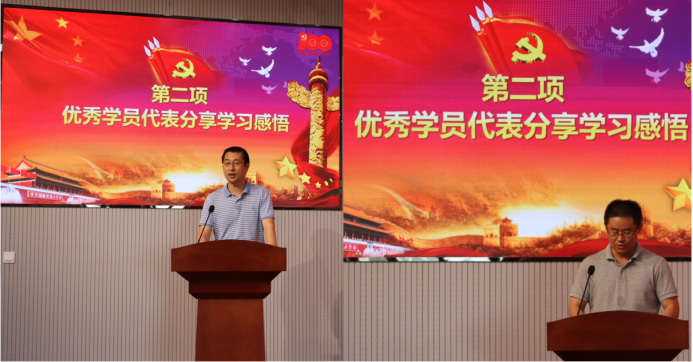 学院党委书记孙立军讲授党史学习教育专题党课,机械工程及自动化系党支部书记曹同坤、能源与动力工程系党支部书记张晓光分别就读书班期间自己的所学、所思、所想交流了自己的学习感悟。