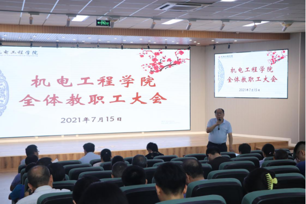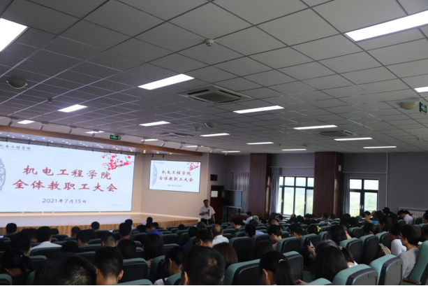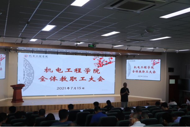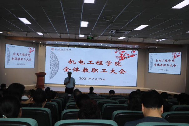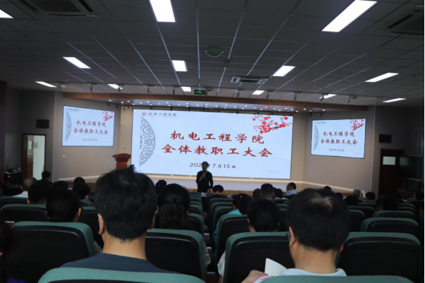 7月15日下午,机电学院在D3楼530会议室召开全体教职工大会,学院党委书记孙立军,学院院长何燕,学院领导班子及全体教职工参加了会议。会议由院长何燕主持。