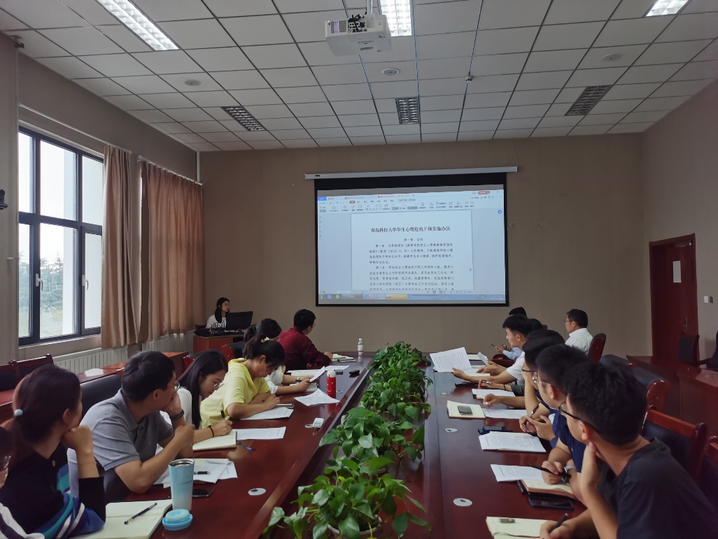 为切实加强和改进学生心理健康工作,不断提高学院心理危机预防干预专业水平,10月5日下午,机电学院团委在505会议室召开2021-2022学年第一学期心理工作研讨会。学院党委副书记兼副院长肖强主持,团委书记兼学工办主任王作辉及全体辅导员老师参加了会议,会议由学院心理工作站站长郭佩佩主讲。
