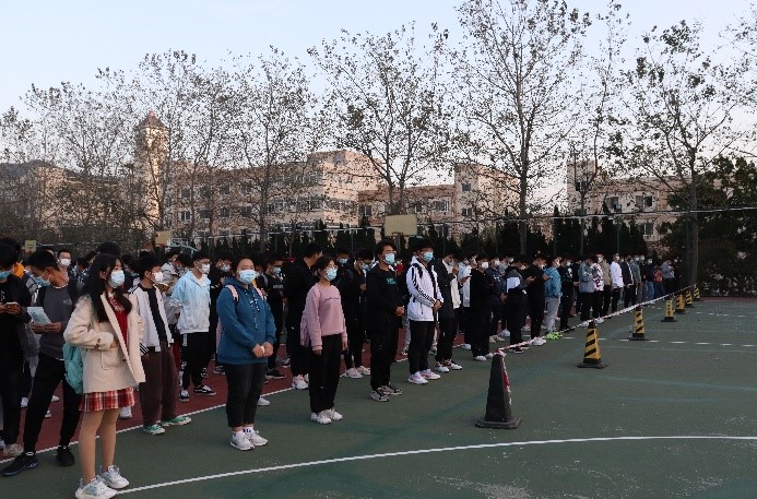 为进一步提升学校疫情防控应急处理能力和水平,根据省市有关文件精神,2021年10月27日下午,机电学院在崂山校区篮球场组织开展了全员核酸检测实战演练。学院组织全体师生积极参与此次核酸检测实战演练,在短时间内将人员聚齐,紧张有序地在警戒线外等候。