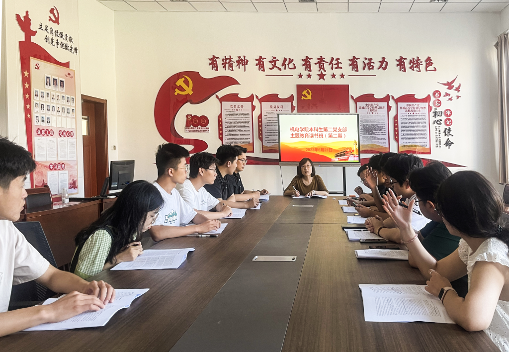 6月21日机电学院本科生第二党支部于机电楼529会议室开展“学习贯彻习近平新时代中国特色社会主义思想主题教育”读书会(第二期),支部预备党员参加了此次会议。