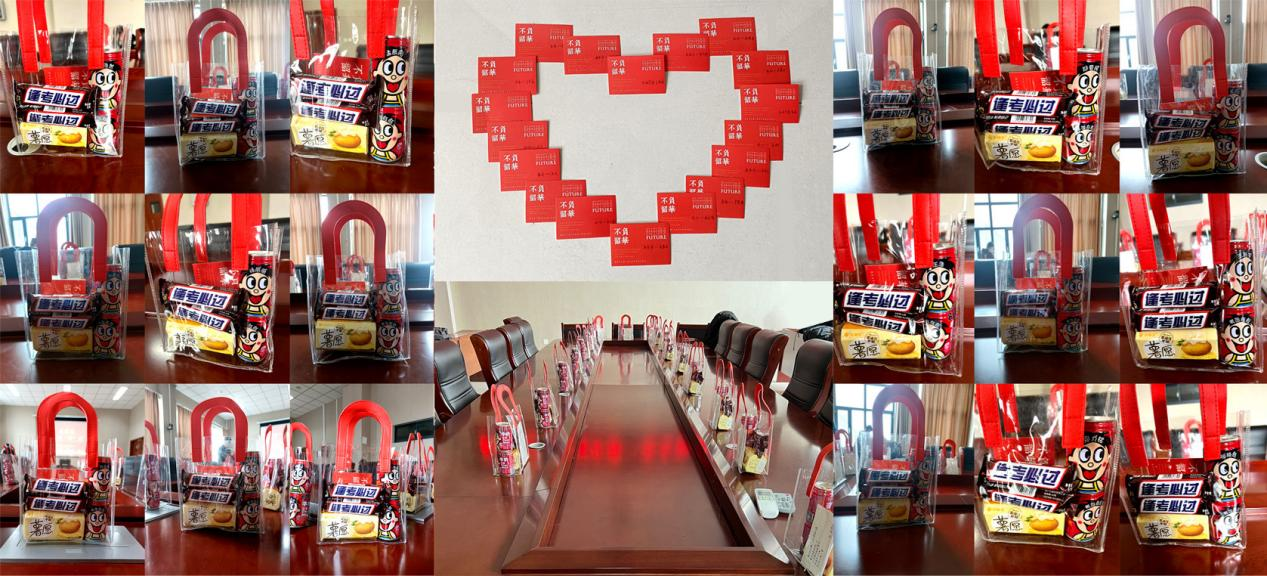 在匆忙的考研之路上,机电学院本科生第二党支部为20级考研的同学们送上温暖祝福,送去了充满美好寓意的“考研胜利大礼包”。礼包中的每一份物品都经过了认真选择、精心设计,专属定制承载着诚挚的祝福:两瓶专属旺仔祝同学们考运旺旺,金榜题名;一包薯愿薯片祝同学们终成所“愿”,增强自信心;两支士力架给予同学们满满的能量,在考场上“全”“力”克难关。同时,党支部的其他同志们也亲手写下了考研寄语,一笔一画,是对考研学子们的祝福与鼓励;一字一句,是对他们的嘱咐与期望。