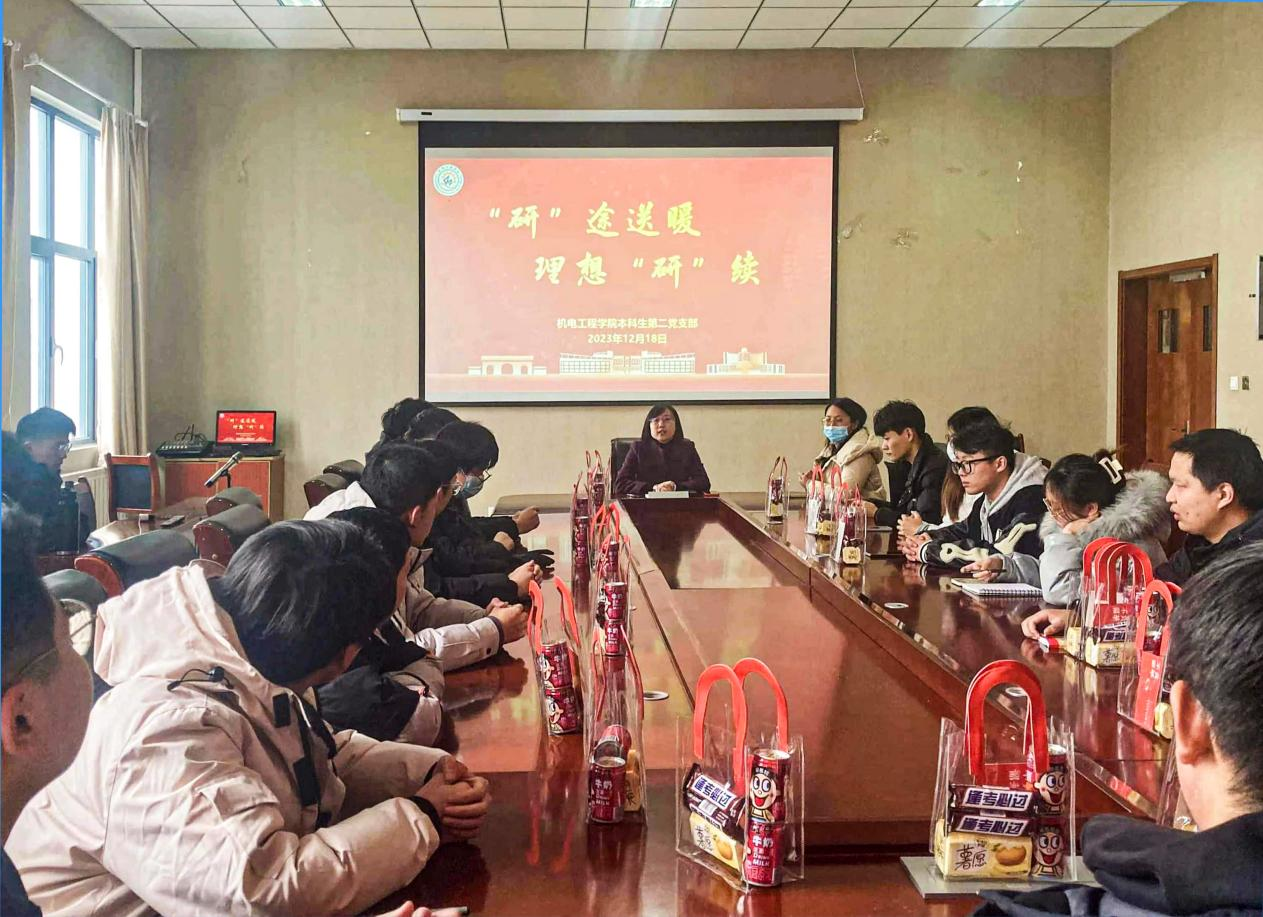 在2024年全国硕士研究生考试即将来临之际,为进一步激发备战考研同学们的斗志,增强必胜信心,助力同学们考研上岸,12月18日下午,机电学院本科生第二党支部组织开展“研”途送暖,理想“研”续主题党日活动。