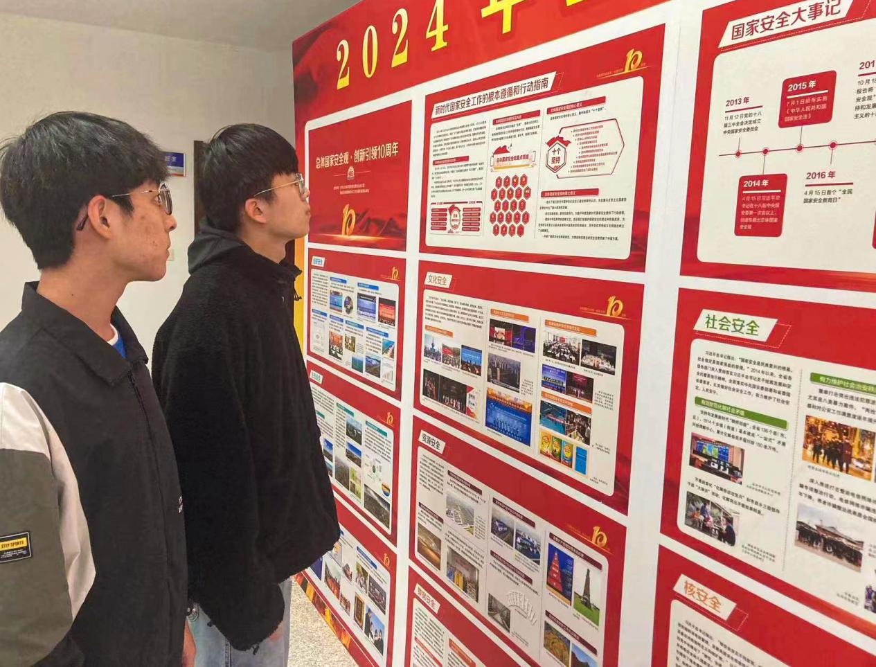 为深入贯彻落实总体国家安全观,强化国家安全意识,提升防范安全风险能力,4月23日下午,必赢线路检测3003no1本科生第二党支部在崂山校区综合服务楼一楼大厅举办了学习总体国家安全观主题党日活动,支部全体党员参观了《总体国家安全观·创新引领10周年》主题展览。