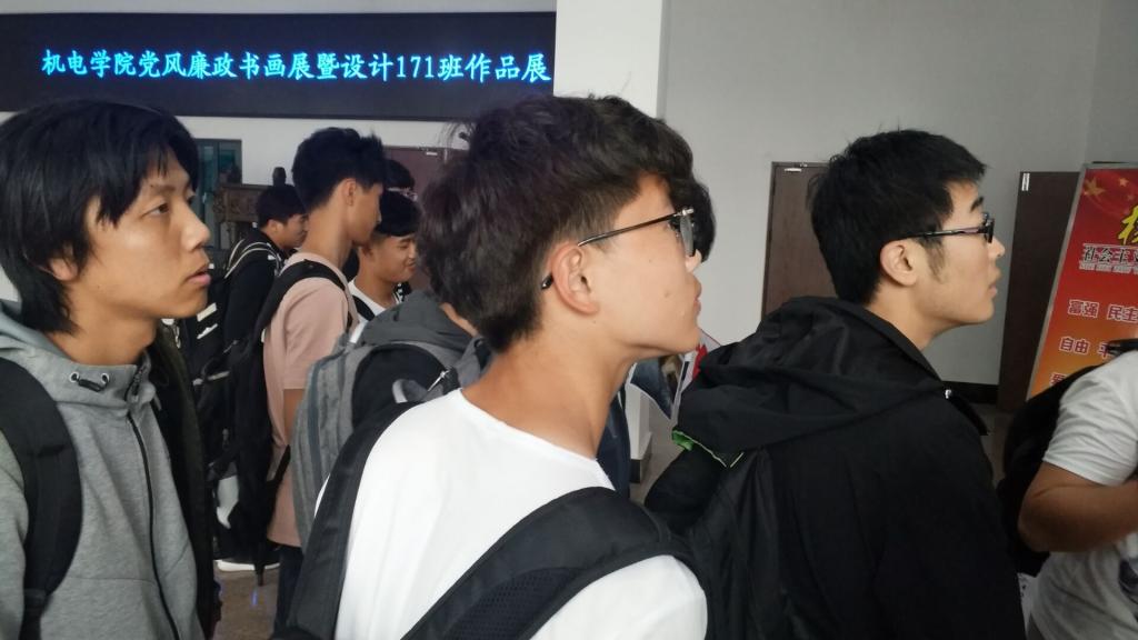 为了贯彻全面从严治党要求,认真学习宣传党的十九大精神,切实加强党风廉政建设,进一步增强全院党员领导干部遵规守纪意识,5月15日至20日,由机电学院党总支主办,机电学院分团委、工业设计171班承办的机电学院党风廉政书画展暨设计171班作品展在机电学院大厅展出。