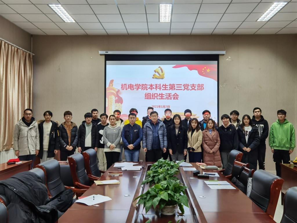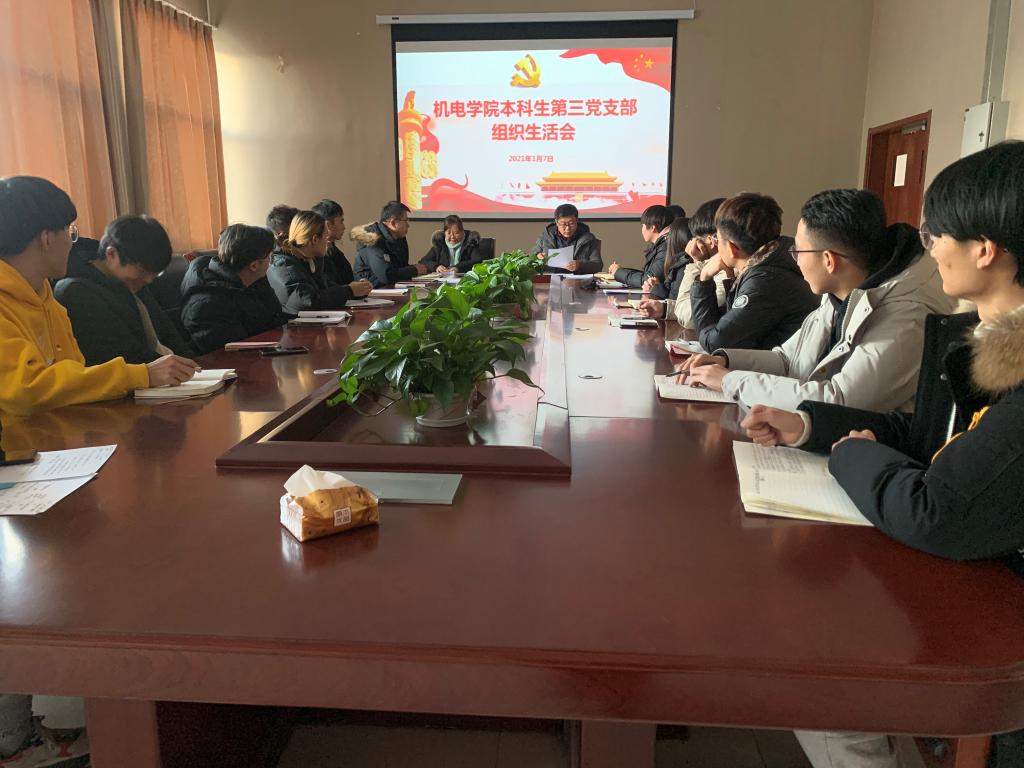 为落实学校党委组织部《关于召开基层党支部组织生活会及开展民主评议党员工作的通知》要求,2021年1月7日下午,机电学院本科生第三党支部在机电楼518会议室召开了2020年度组织生活会。机电学院党委委员付平老师对会议进行了点评,会议由支部书记王作辉主持。