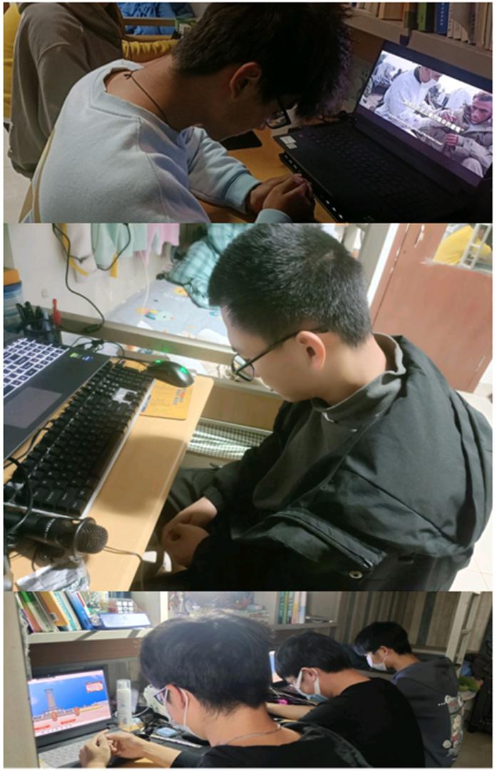 同学们对影片的内容所感染,低头哀悼,深痛思念