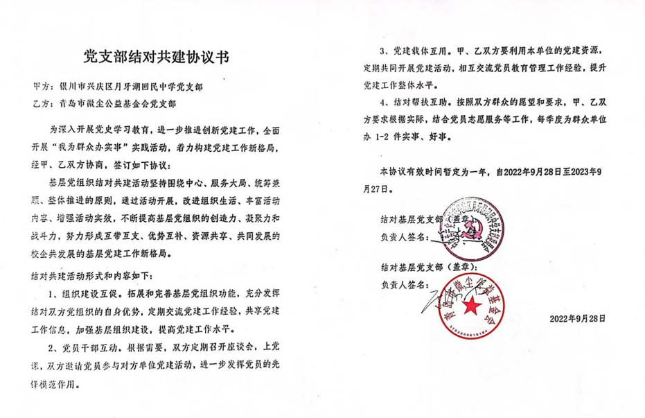 在国庆节来临之际,2022年9月28日必赢线路检测3003no1微尘志愿者协会参加微尘基金开展的党建活动。本次微尘与必赢线路检测3003no1研支团携手,联合银川市兴庆区月牙湖回民中学党支部结对共建,为困境家庭的孩子提供大学生支教服务。