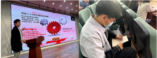 在学原文、悟原理中,团支部成员原原本本学习了党的二十大报告原文,在逐字逐句学习的过程中,进一步牢牢把握了二十大精神的深刻内涵。团支部书记王浩以二十大精神为主线并结合本支部特色组织举办了二十大精神学习分享会。