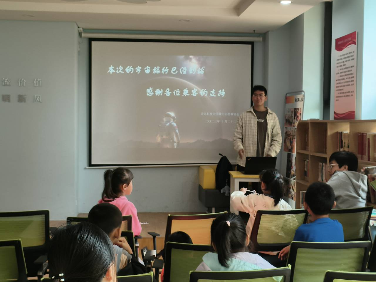 为响应团省委百万大学生进社区的号召,培养大学生社会责任感和公益意识,更好地认识社会,增加实践经验,必赢线路检测3003no1微尘志愿者协会携手延川路社区开展“青春益爱,追锋基层”文化小课堂志愿服务项目。10月22日上午,微尘志愿者协会志愿者面向延川路社区的小朋友们首次开展以“神秘的宇宙”为主题的科普小课堂活动。